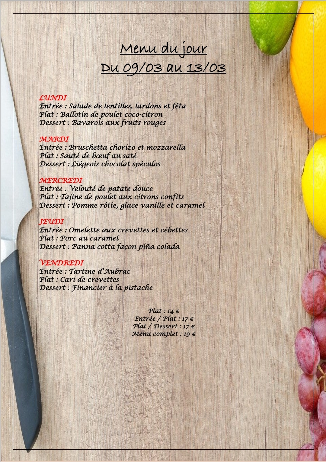 "J’ai beaucoup apprécié l’accueil et le service remarquables. Les menus du jours sont excellents j’ai adoré !"